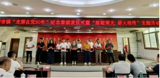 七月骄阳似火,恰似我们对党炽热的忠诚;七月旗帜飘扬,指引我们迈向新征程的方向。7月1日,河市镇举办“光荣在党50年”纪念章颁发仪式暨“致敬荣光 薪火相传”主题活动。