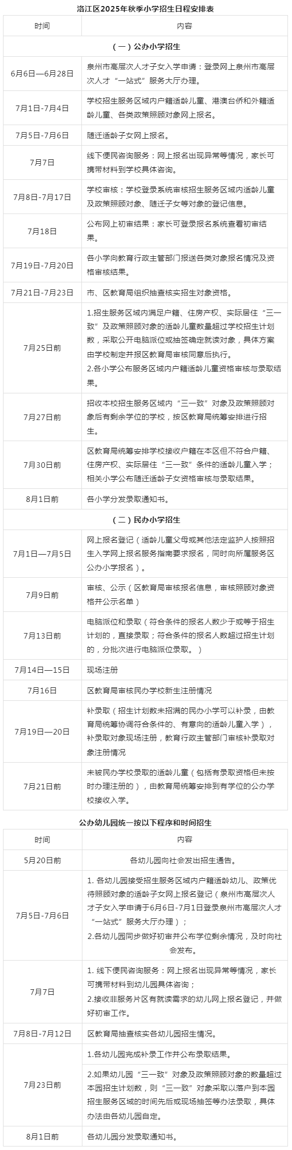 (三)招生时间安排表