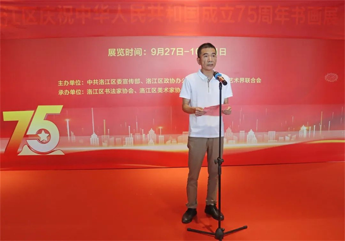 现场,张荣伟、叶永萍共同为洛江区庆祝中华人民共和国成立75周年书画展揭幕。