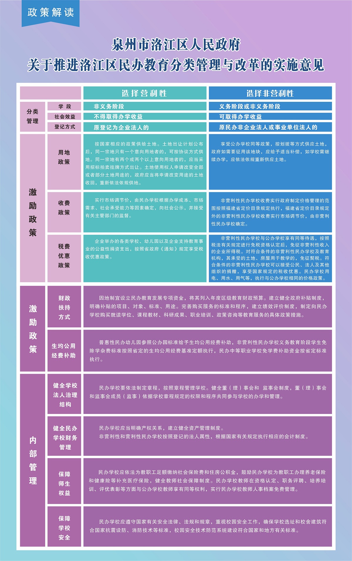 【图解】关于《泉州市洛江区人民政府关于推进洛江区民办教育分类管理改革与发展的实施意见》的政策解读
