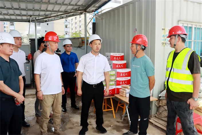 “要注意休息,在户外要做好防暑降温工作……”郭宁一行还检查各点位防暑降温相关措施落实情况,向一线工作者的辛苦付出表示感谢,并要求各单位建立防暑降温应急预案,备齐备足防暑降温物品、药品,落实高温补贴。