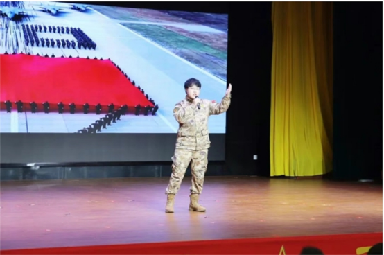 最后,全体新兵合唱《强军战歌》,嘹亮的军歌振奋人心,展示了新兵们矢志强军的坚定信念和豪迈气势,观众掌声、欢呼声此起彼伏。