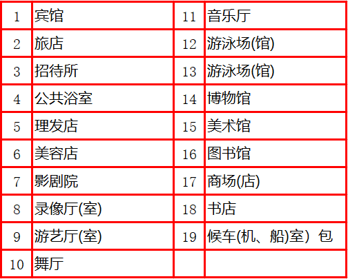 根据国务院《公共场所卫生管理条例》,经当地市场监管局注册的公共场所可以提出公共场所卫生许可申请,包括7类19种行业: