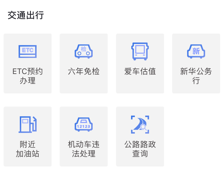 闽政通APP还提供包括机动车违法处理、ETC预约办理、附近加油站、公路路政查询等多项“交通出行”相关服务。