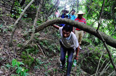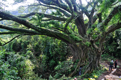 “山重水复疑无路,柳暗花明又一村”,时而穿过灌木丛林,时而观赏田园风光,不知不觉来到了炉田村上寮。抬头望去,两颗情侣大榕树似一绿色巨伞撑立地上,壮观景象令人为之叹服。见到此景,真是不枉来时的艰辛与汗水啊。