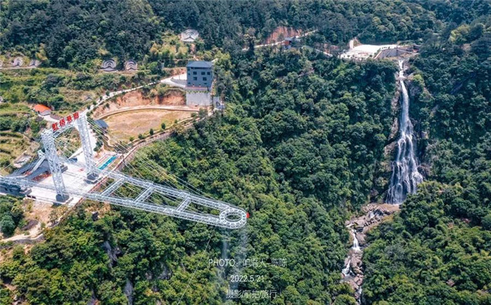 是的,景区里颇为壮观的,是落差108米的彩虹瀑布,还有超吉尼斯纪录8.4米的虹桥悬廊。达人们纷纷走上虹桥悬廊,合影留念。