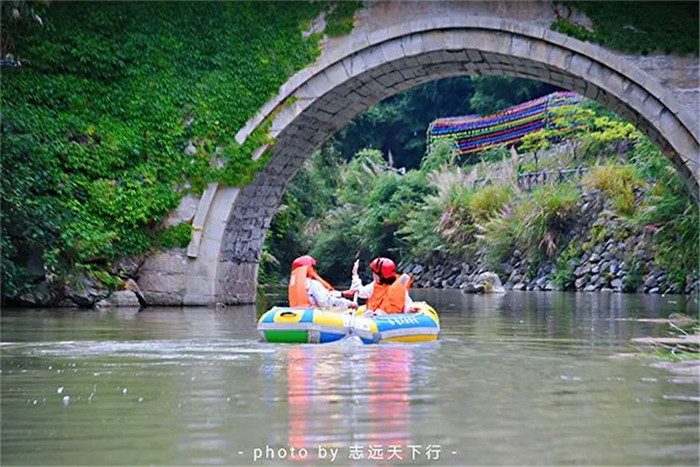 离开虹山乡,前往罗溪镇的龙潭溪景点,已是下午4时多。天公不作美,飘起了小雨,不适合漂流。达人们索性在溪中划起了漂流艇,观赏龙潭古桥及古榕树,悠然自得。达人“太空船”说,如果天气晴朗,一定要体验一下龙潭溪惊险刺激的漂流旅程。