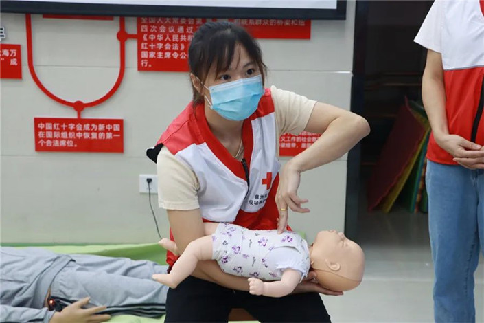 “这期培训主要包含心肺复苏、腹部冲击法,以及创伤包扎等等内容,采取线上理论学习和线下实操技能培训的方式进行学习、考核,使学员规范掌握应急救护技术,知道在什么情况下实施急救以及怎么救、敢救、能救。”洛江区红十字会专职副会长黄群沙说道。