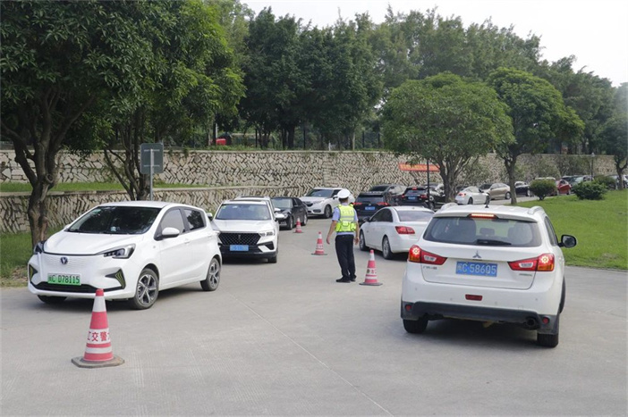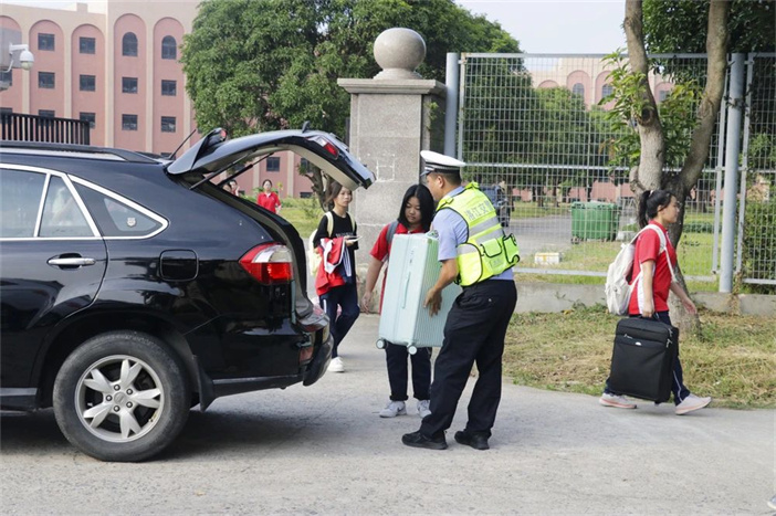 来到仰恩大学附属学校门口,过往车辆正在交警的引导下有序通行。笔者看到,校园内设置了专门接送点,有效将车辆人群分流,家长驾驶车辆按照标识行使接送学生并有序离开。学校还通过安排初、高中部错峰放学,让学生在规定位置等待接送等措施,实现接送车辆即停即走。