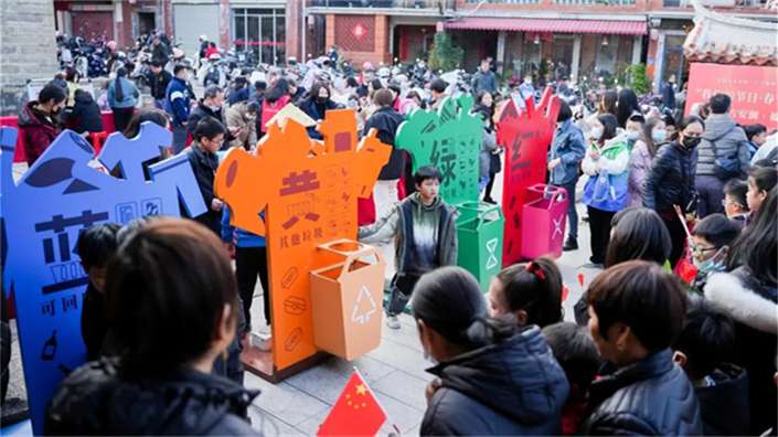 现场还开展扫黄打非宣传和垃圾分类打卡集章活动,群众在志愿者的引导下积极参与垃圾分类大闯关、知识转盘、投壶等活动,并领取糖画奖品,在玩乐中潜移默化形成绿色、低碳、环保的理念。
