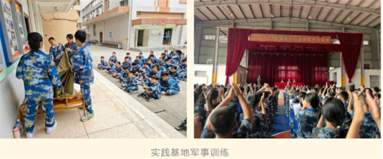 学校每学年组织五年级学生到罗溪实践基地进行军事研学实践活动,进行站姿、队列、内务整理等基础训练,培养学生吃苦耐劳、团结协作的精神;组织四年级学生参观科技馆,了解“科技兴国”的力量。