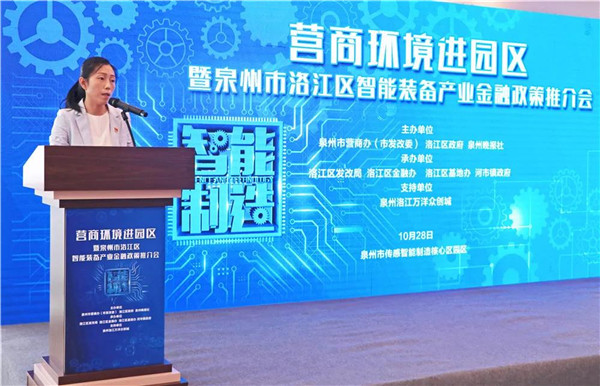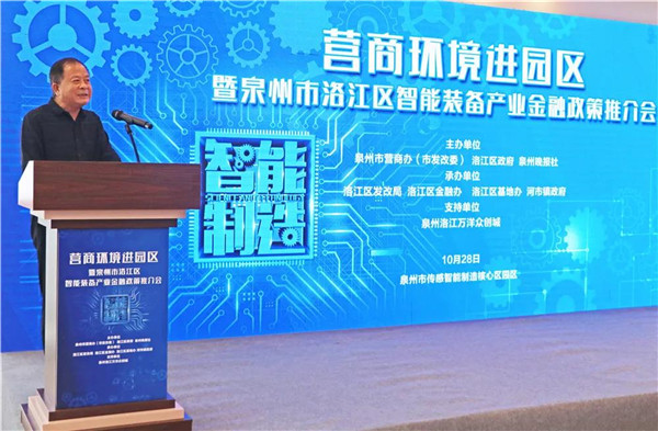 10月28日,以“优化营商环境,助力智能制造新发展”为主题的营商环境进园区暨泉州市洛江区智能装备产业金融政策推介会活动在泉州市传感智能制造核心区园区举行。