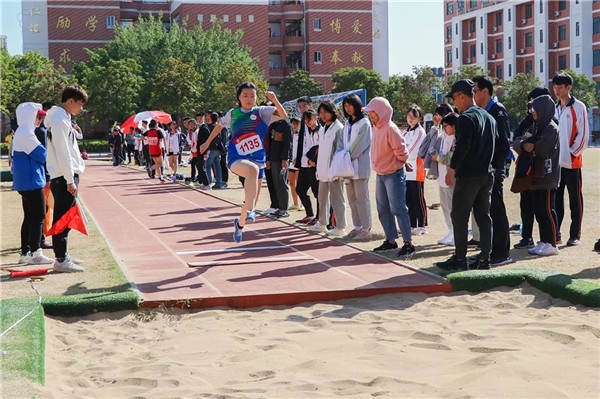 在田赛场,跳高运动员步伐坚定,在跳杆前纵身一跃,跳出了充满力与美的夹角;跳远运动员眼神专注,一气呵成地完成助跑、起跳、落地等动作。