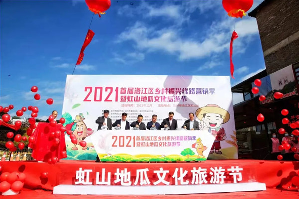 12月11日,2021首届洛江区乡村振兴线路营销季暨虹山地瓜文化旅游节在虹山乡开幕。市农业农村局副局长曾国志、市委网信办二级调研员黄培渊、市委宣传部四级调研员张爱斌,区委副书记陈政实、区委常委郑友飞,区政府副区长沈艺程、林联华参加。