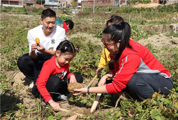 这既是一次亲子同乐的机会,又是一场视觉与乡间味蕾的盛宴,更是一场乡村振兴的生动实践。暖阳高照,游客们欢声笑语结伴而行。妆糕人、布袋木偶戏等非遗文化展演,以及挖地瓜、烤地瓜、挑地瓜等趣味游戏,令游客们意犹未尽,流连忘返。