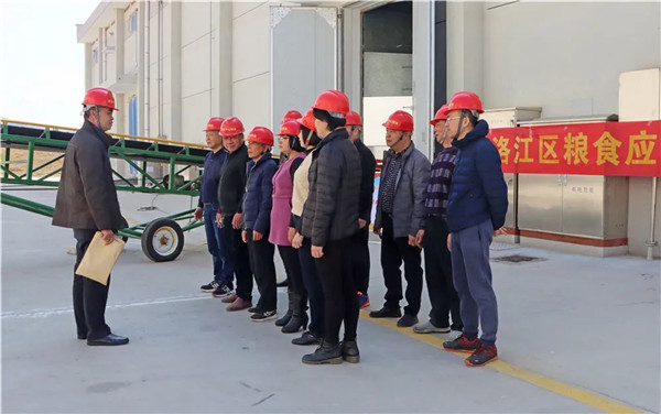 在位于罗溪镇的泉州市区中心粮库现场,区发改局粮食和物资储备股人员、区粮油公司全体干部职工、区粮食应急供应点负责人合力开展演练。