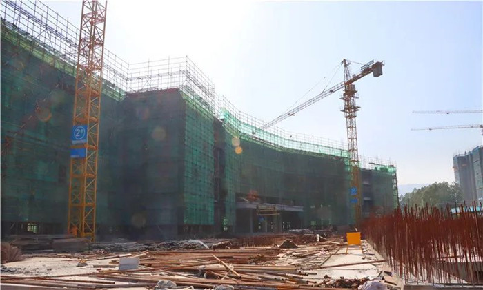 据了解,目前整个项目已完成工程量的65%,其中门诊大楼已全面封顶,住院大楼已完成工程量的40%,正为接下来的主楼封顶起跑助力,预计2022年7月底可完成封顶,2023年3月份整个项目可投入试运营。