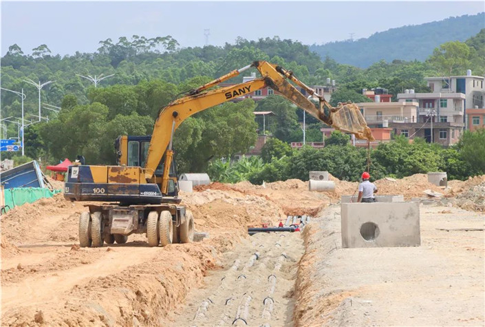 “目前项目土方工程基本完成,正在做边坡及管网施工,已完成总投资约3500万元,完成总投资量的35%,预计8月底完成主路面建设,9月份完工。”项目现场负责人张培基说道。