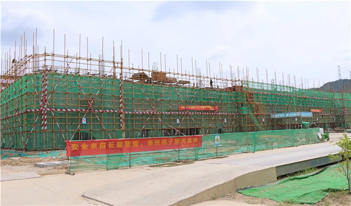“项目共分为两期,目前项目(一期)联合厂房钢结构立柱吊装已完成90%,吊车梁、钢梁吊装已完成70%,厂房内的两条生产线设备基础也完成了50%;综合站房、综合楼已完成首层梁板浇筑,正在进行上部主体结构施工,预计9月底竣工。”三一筑工(泉州)建筑科技产业园项目(一期)现场负责人任华伟介绍道。