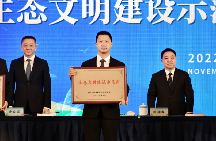 会上,生态环境部对106个第六批生态文明建设示范区、8个生态文明建设示范区(生态工业园区)、51个第六批“绿水青山就是金山银山”实践创新基地进行了授牌命名。