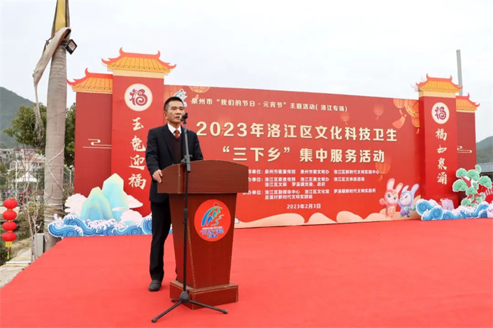 2月3日,“玉兔迎福 福如泉涌”2023年洛江区文化科技卫生“三下乡”集中服务暨泉州市“我们的节日·元宵节”主题活动(洛江专场)在罗溪镇新时代文明实践公园举行。区委常委、宣传部部长张荣伟参加。