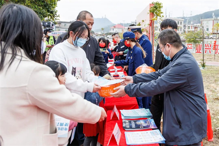 园区内,宣传咨询服务活动也在如火如荼地进行着。设置的多处党的二十大精神宣传展架,吸引了众多群众驻足学习。工作人员向群众分发《福建省志愿服务条例》、社会主义核心价值观、移风易俗、网络安全、扫黄打非、平安综治、普法、科学普及、消防安全、垃圾分类等主题宣传材料,认真讲解相关知识,耐心回答各种提问。