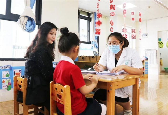 为进一步提高4~6岁阶段儿童孤独症初筛工作效率,医务人员还会定期前往幼儿园等托幼机构,在教师的帮助下掌握儿童的在园表现,了解儿童是否出现语言功能和社会交往能力障碍或倒退,并进行现场交流互动,观察儿童的语言表达与社交行为。一旦发现异常将及时与家长沟通,告知家长转诊做复筛,做到早筛查、早评估和早干预。