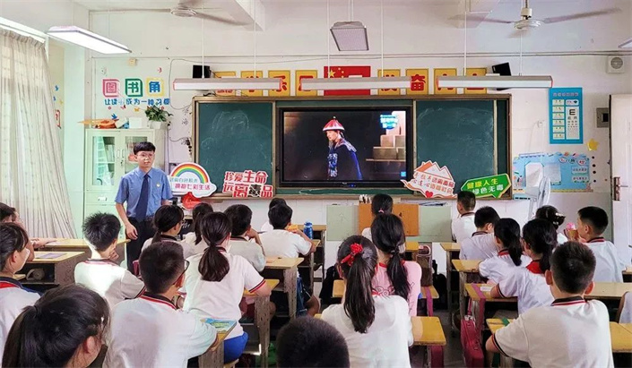 在泉州实验小学洛江校区,区检察院干警为同学们带来了一堂《珍惜生命 远离毒品》的法治宣传课。针对小学生好奇心强、识别能力弱、易被诱导等特点,通过PPT以及多样化的互动方式向同学们演示讲解了毒品的种类,吸食毒品对个人、家庭和社会带来的严重危害性,教授同学们如何有效拒绝毒品和一些具有针对性的自我保护措施。