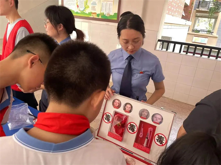 区检察院干警还向同学们分发禁毒宣传册,讲解禁毒知识,提醒同学们拒绝“尝鲜”心理,不接受陌生人食物,提高警惕性,远离易涉毒高危区域。同时,鼓励同学们争做小小禁毒宣传员,将学到的禁毒知识讲给父母和亲友听,通过“小手拉大手”,传递禁毒知识。