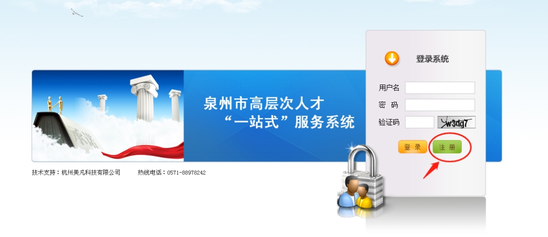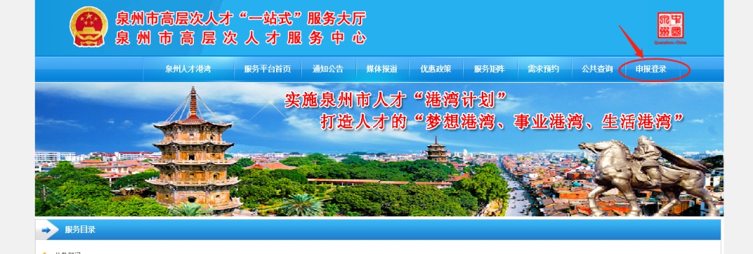 2.登录“泉州市高层次人才‘一站式’服务大厅”进入“申报登录”端口,进行单位注册