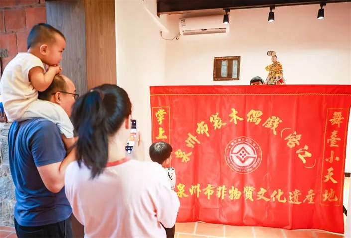 此外,“书法演变”体验之旅、“书法文化”交流之旅等活动以书法为媒,通过书写、拓印、掐丝画、糖画、剪纸等方式,加强两岸青少年的沟通交流,共同弘扬中华优秀传统文化。“魅力蓝染”体验、“古桥新声”主题音乐节、布袋木偶戏等传统技艺展示和展演、非遗市集等形式多样的活动深受两岸同胞喜爱,吸引了众多学生、游客体验,从中感受非遗文化独有的魅力。