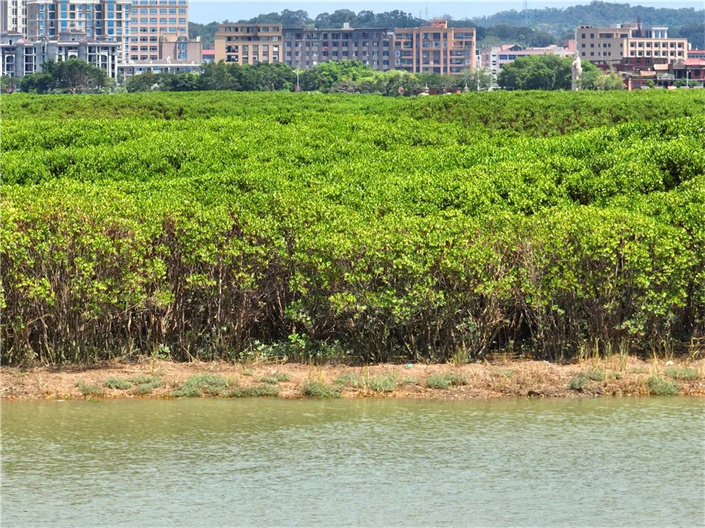 来到泉州湾河口湿地(洛江段)省级自然保护区,连绵成片的红树林长势喜人,满潮时海水与红树林交相呼