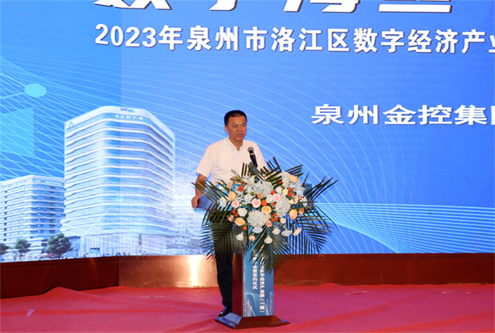 王文坤讲话。他表示,市金控集团携手洛江区共同开发数字经济产业园,是集团探索与区县联动发展的一次创新实践,通过“参与建设+招商引资+金融服务”的投建营一体化模式,在全市打造了低成本建设、高标准招商、全方位服务的标杆产业园。集团将全力做好产业园的建设、招商、运营工作,为洛江高质量发展贡献力量。