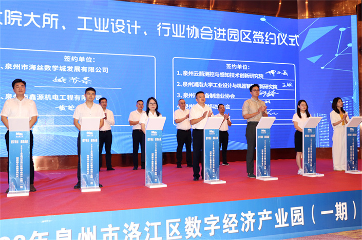 为进一步加快洛江区工业(产业)园区标准化建设招商工作,8月15日,洛江区召开“数字海丝 园聚未来”数字经济产业园(一期)招商推介会暨签约仪式,企业、院所、协会、银行代表们齐聚一堂,共谋产业园区高质量招商及运营。