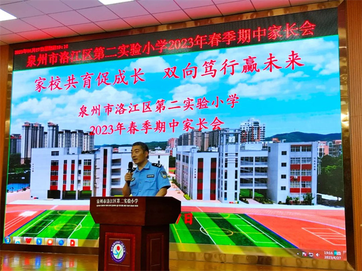 家长会上邀请民警进行法治宣传
