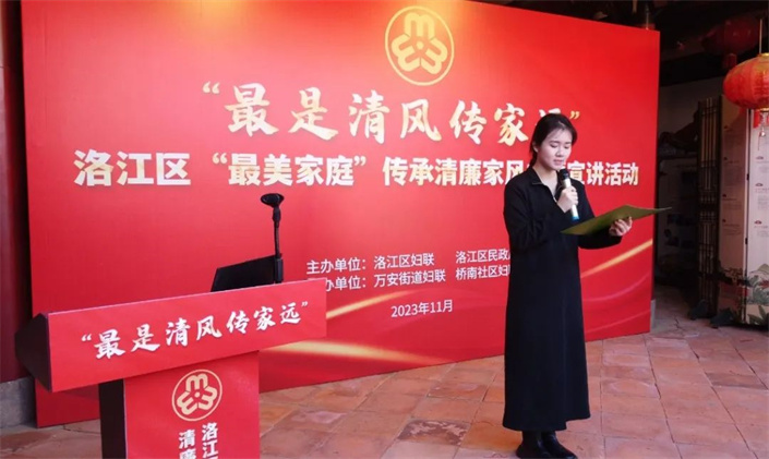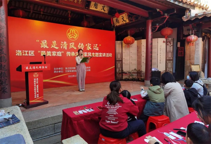 为贯彻落实习近平总书记关于注重家庭家教家风建设的重要论述,引导广大家庭、各级各类最美家庭进一步厚植家国情怀、弘扬优良家风、涵养清正作风,日前,洛江区妇联在万安街道桥南社区家风家训馆举办“最是清风传家远”——最美家庭传承清廉家风主题宣讲活动。各乡镇(街道)最美家庭,亲子家庭50多人参加。