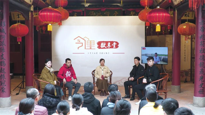 而在刘氏家庙中庭则举办一场“万安古韵,非遗新‘声’”邻里微享堂分享活动。此次分享从群众感兴趣的话题入手,邀请漆画非遗项目代表性传承人林宇毅、洛江区第三实验小学教师王宝平、侨批馆现场负责人王燚、非遗讲解员志愿者汪嘉龙等人围绕“在当前的‘非遗’浪潮下,万安街道的非物质文化遗产该如何保护和传承”进行探讨,现场气氛热烈。