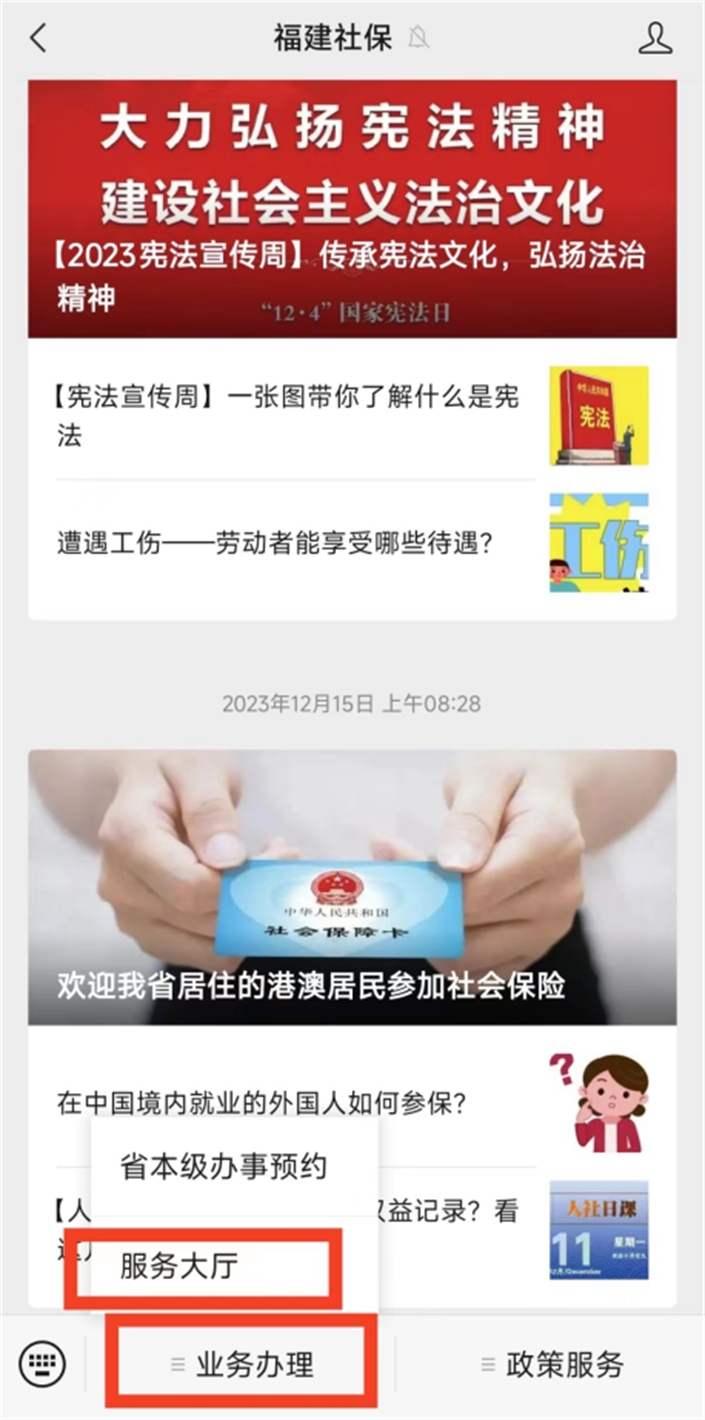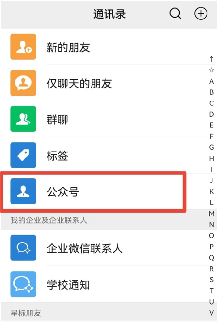 2. 已关注过公众号的,请打开微信“通讯录”——“公众号”,找到“福建社保”。