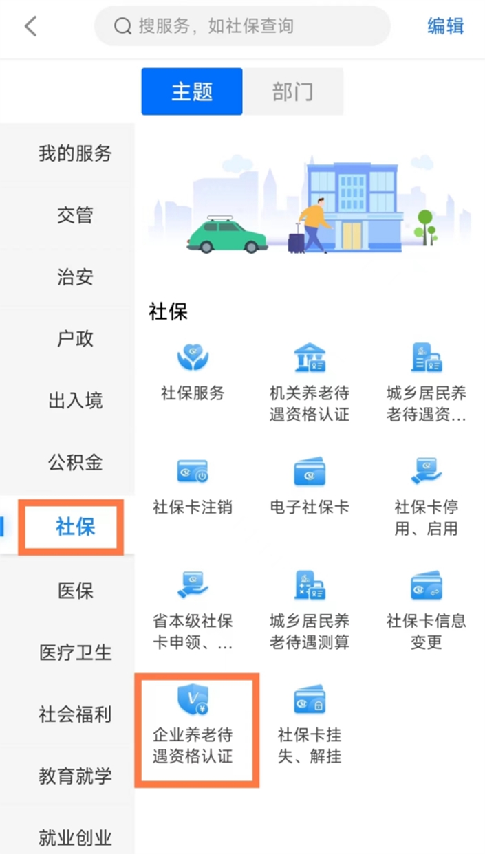 3. 点击“社保”——“企业养老待遇资格认证”。