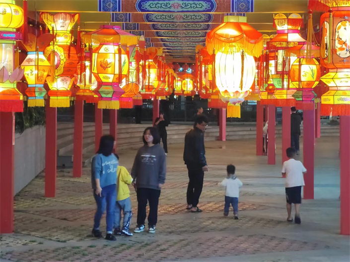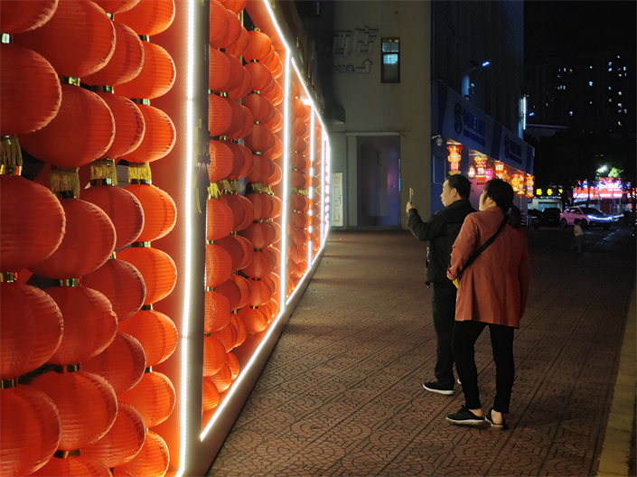 尽管各组灯组还在调试,但五彩斑斓的花灯,已经吸引了不少市民驻足围观,大家对即将到来的元宵灯会,充满期待。