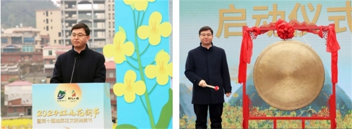 洛江春景美如画,油菜花海遍地金。3月2日,为期两天的“凤回大宋”虹山花朝节暨第十届油菜花文旅消费节活动在洛江虹山举办。美丽风光吸引了不少本地群众和外地游客前来赏花、游玩、打卡。区委常委郑友飞参加启动仪式。