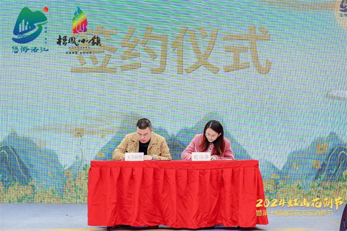 “近年来,虹山乡聚焦康养、农业、文化、旅游等优势资源,以‘梧凤小镇、彩虹之乡’为主题,以‘五凤’为IP,全域建设康养农文旅小镇。今年我们也有了自己的农特产品,可以进一步帮助村民创收,增加村集体收益。”虹山乡乡长林堃鹏介绍,骑游虹山项目的签约,将进一步补足虹山乡的交通短板,通过骑游把虹山乡的三大景区以及乡村旅游点串联起来,为虹山乡的第三产业服务助力。