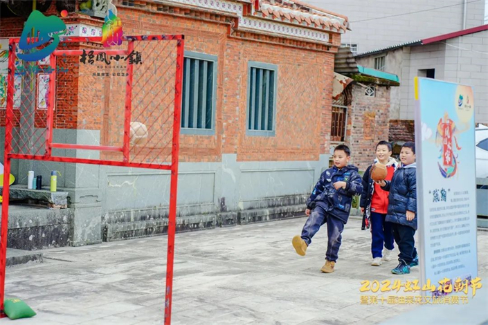 “今天我和爸爸妈妈还有妹妹一起来这里玩,我玩蹴鞠游戏还得到了一个小奖品,这里有很多好玩的地方,有抛绣球还有一些表演活动,还能看到美丽的油菜花,而且这里的美食十分好吃。路边的冰糖葫芦,咬一口都是香甜的。”11岁游客小朋友赖梓雄高兴地说道。