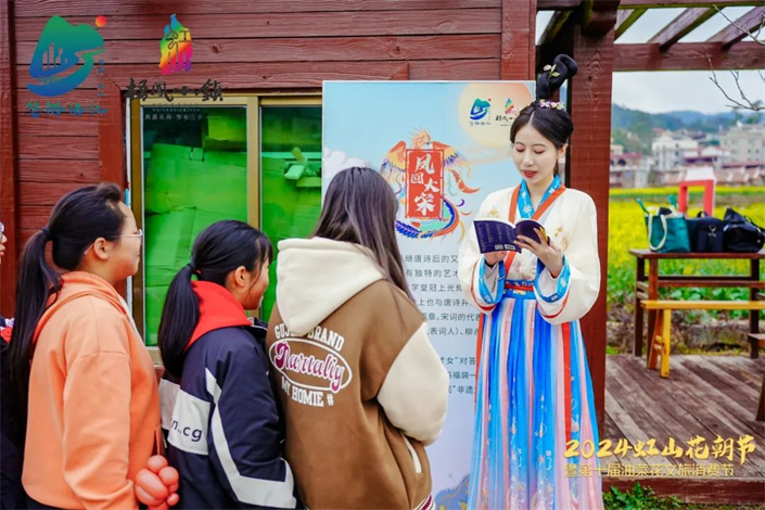 本次活动还精心策划了“宋城抛绣球”“宋词接龙”“宋代蹴鞠”等有奖互动活动;福文化专题——煮茶话福活动,让游客在花海中享受乡村惬意慢生活;花田乐会则为游客带来音乐盛宴,太极拳、八段锦、南音等表演传播非遗文化;更有美食集市、传统服饰体验区让游客品尝具有本地特色的美食、感受传统文化魅力。