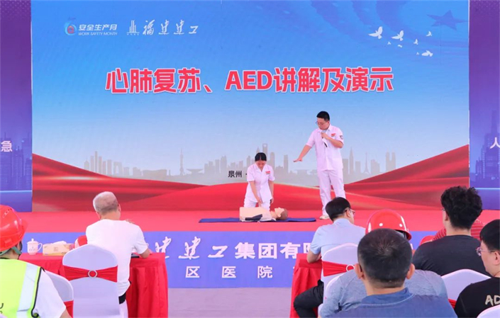 活动还组织前往城建?乐居安达小区建设现场,观摩安全生产标准化建设,参观“龙吸水”大型抽水设备等防汛设施设备,并进行逃生演练及自救互救等应急避险能力知识宣传。此外,活动还组织各参建单位代表进行安全宣誓,开展消防安全知识讲解和演示、“心肺复苏”及“AED”讲解演示及“夏送清凉”慰问仪式。