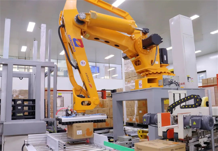 在“5G智慧工厂”,显示屏上,生产指标数据实时跳动更新;生产线上,机械手精准地运转不停。一箱箱卫生用品通过自动引导车智能运输。走进车间,传统的“人海战术”已不复存在,取而代之的是通过“智慧大脑”的严密监控,确保了自动化生产线的井然有序。