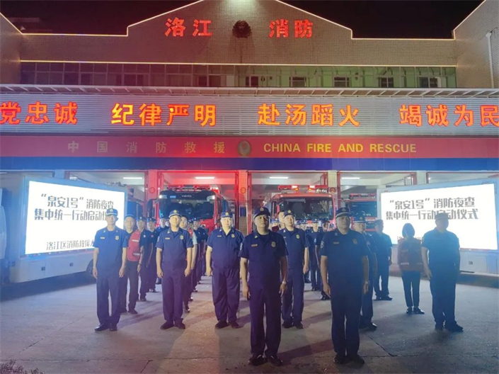 为深化消防安全治本攻坚三年行动,精准“畅通生命通道”、电动自行车安全治理,源头防范火灾事故,确保全区消防安全形势稳定,7月15日19时40分,洛江区消防救援大队组织大队部、全体指战员、消防志愿者等参加全市“泉安1号”消防夜查集中统一行动启动仪式,仪式结束后,大队抽调人员组成5个检查小组开展集中统一行动。