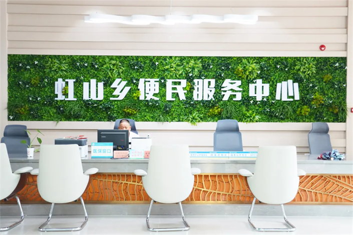 带着一路云和水的奇迹,却被一抹白色建筑吸引了注意,那是虹山乡智慧党群服务中心,一个集便民服务中心、百姓书房、乡村好货馆、招商中心、乡村振兴研究院、“文旅产业”人才之家的地方。