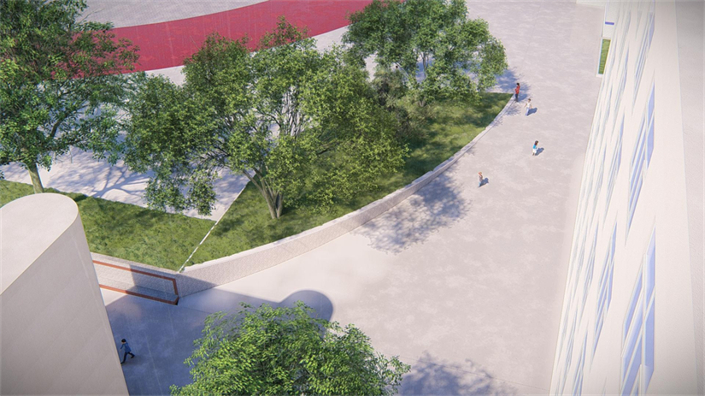 为保障师生安全,此次项目对校园内部道路进行了优化。“这路口原来是直角,而且路又窄盲区很大,一边是教学区,来往的师生很多,存在安全隐患。所以这次把直角的拐角处改造成弧形的,整个空间就比较大,视野开阔了也更安全了。”河市中学校长助理杨建春介绍道。