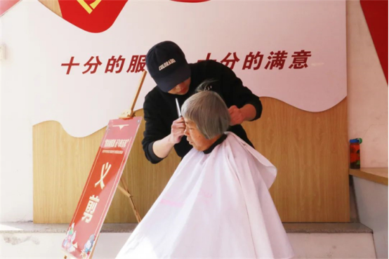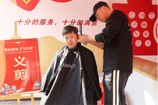 一旁的爱心义剪活动也如火如荼地开展着。志愿者细致倾听群众的理发需求,为群众修剪出整洁、精神的发型。现场群众露出满足与欢喜的笑容,对志愿者的手艺赞不绝口。